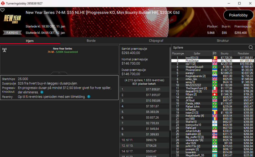 257 entries i den rekordstore turnering skulle finde sin vinder søndag aften