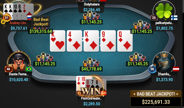 FishOnHeater vinder $45.779 i Badbeat Jackpot