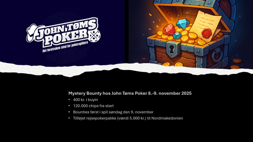 Kom til jubilæumsturnering den 8.-9. november hos John Tøms Poker