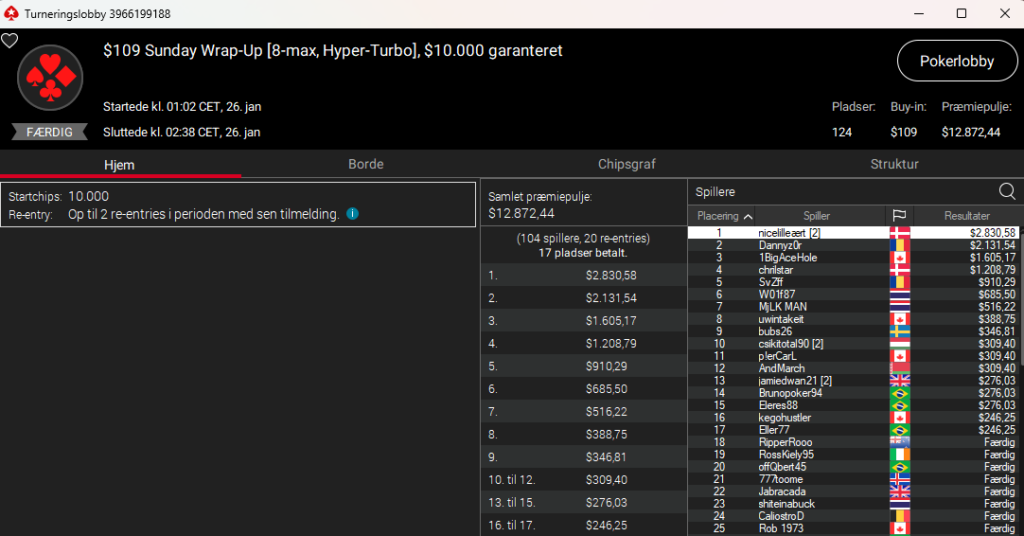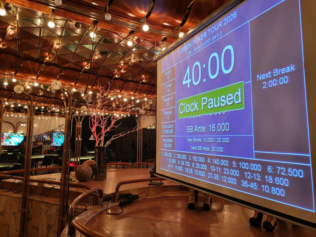 Vi har alle seatings og chipcounts klar til dag 2 ved DPT Main Event 2026