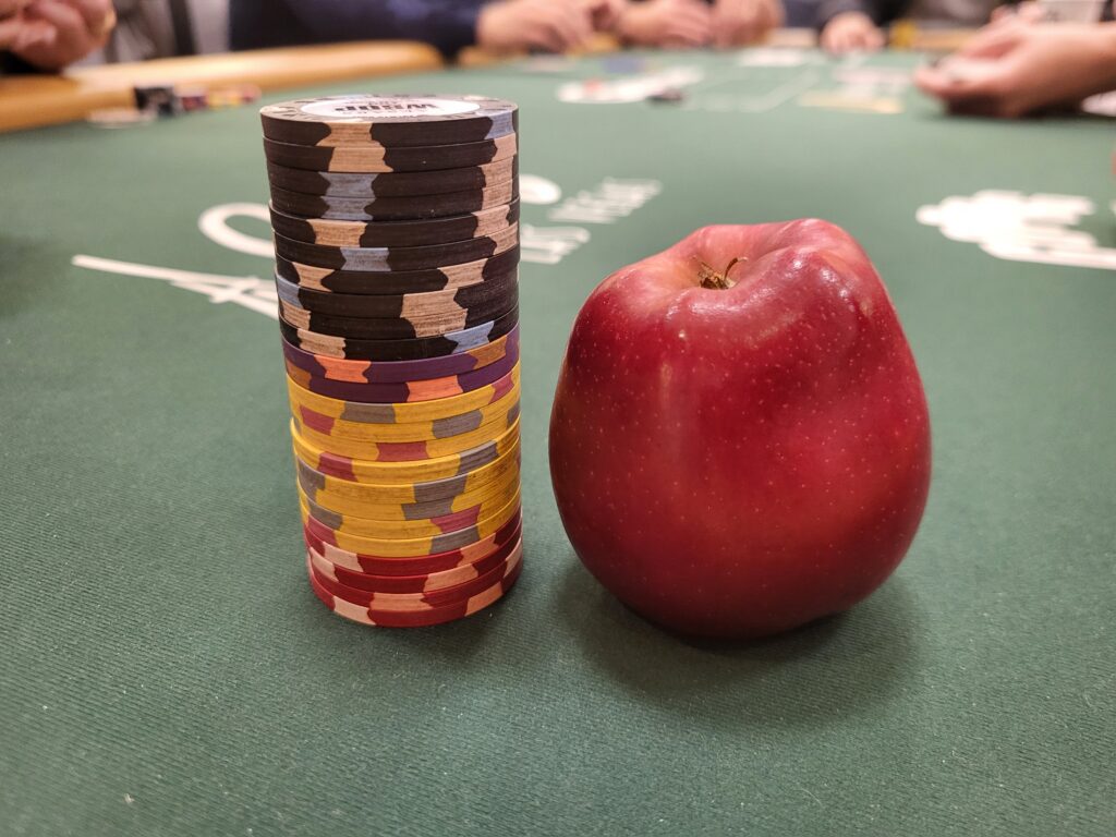 Jeg kunne selvfølgelig ikke spille uden et æble, men var kommet afsted hjemmefra uden. Så jeg traskede ned i WSOP-caféen, hvor prisen var 5 dollars. Så kan jeg lære det!