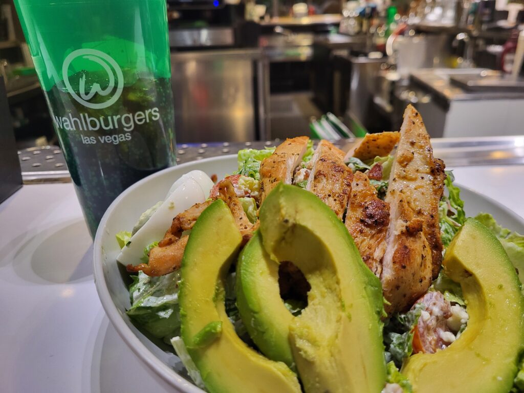 Tilbage på værelset tænker jeg, at livepokeren lever i bedste velgående og hvor er det fedt, at jeg bruger mit uheld i de billige turneringer. Jeg følte ikke lige for at late-regge bullet nr. 2, så tog mig en morfar og hoppede derefter ned på favoritrestauranten Wahlburger, der ligger for enden af Horseshoe ud mod strippen. Ikke inde på kasinoet men i et område med forretninger, barer, shopping og restauranter. Jeg har spist på den restaurant en hel del gange gennem tiderne og i dag nappede jeg en Cobb Salat med kylling og en free-refill Diet Coke til samlet $29 inkl. tip.