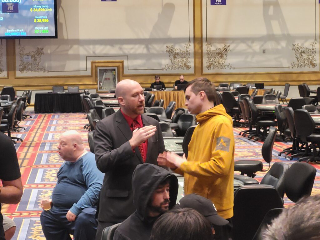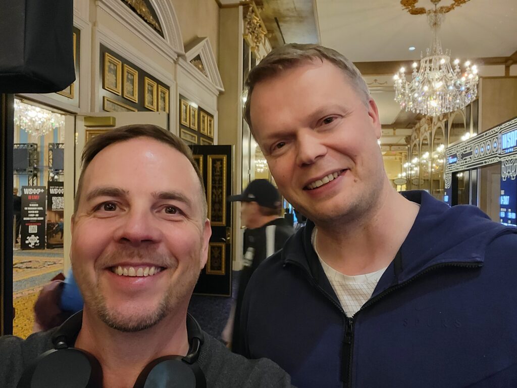 Jeg stødte også ind i Caitlin Comeskey og fik en snak med hende ved “waterfountain”. Hun var i gang med at spille Eight Game Mix. Jeg roste hende for et fantastisk år som pokerambassadør og sociale medier guru. I mine øjne, er hun en af de allerbedste til korte videoer (reels) og pokercontent, der findes lige nu. Hvis I ikke har set eller hørt noget med hende før, så tjek hende lige ud. Hun er vanvittigt sjov. F.eks. da hun, sammen med Nikki Limo skulle spille Team Tag event og bliver interviewet på vej til eventet. Se selv her: