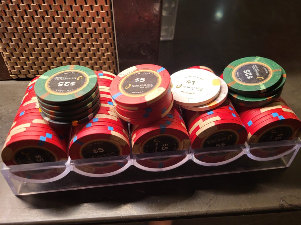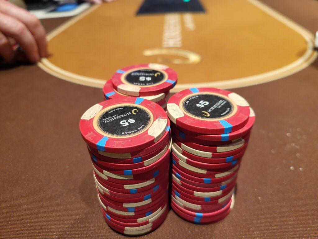 Så bookede jeg et bord på den lokale Horseshoe Pokerroom, hvor jeg måtte vente 45 minutter på et $1-$3 bord.
