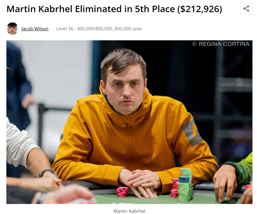 Jeg var forbi Paris – ikke i Frankrig- i en pause i dag. Måtte lige tjekke $10.000 Super Turbo Bounty turneringen, der blev spillet nede i bunden af det store pokerrum. Der var samlet en 50 tilskuere og jeg tænkte straks, at Daniel Negreanu eller Phil Ivey må være gået dybt. Der var tre borde tilbage og på det ene bord, var der nærmest en kø af mennesker tre rækker bagud, der fulgte aktion på bordet. Så hører jeg “Not like that” og Martin Kabrhels velkendte stemme og forstod pludselig, hvad der foregik. Det er jo Kabrhel, som de var kommet for at se og høre på. Det er underholdningen, den konstante sludren og provokation han bringer, som folk er interesseret i at se og lytte til.