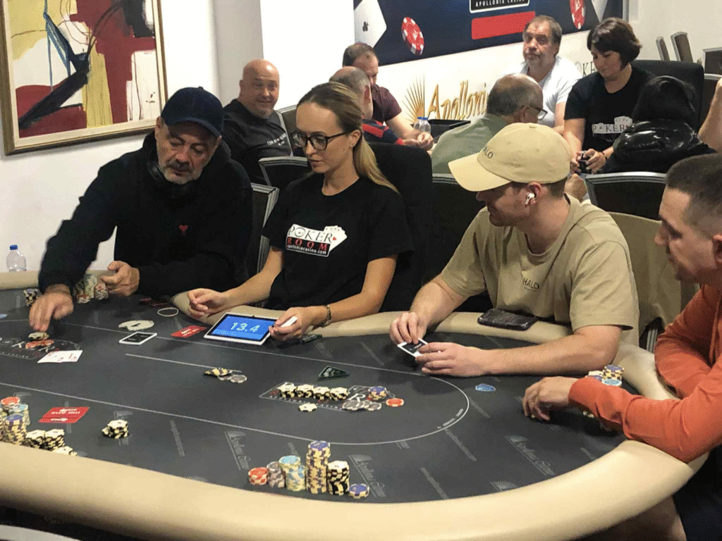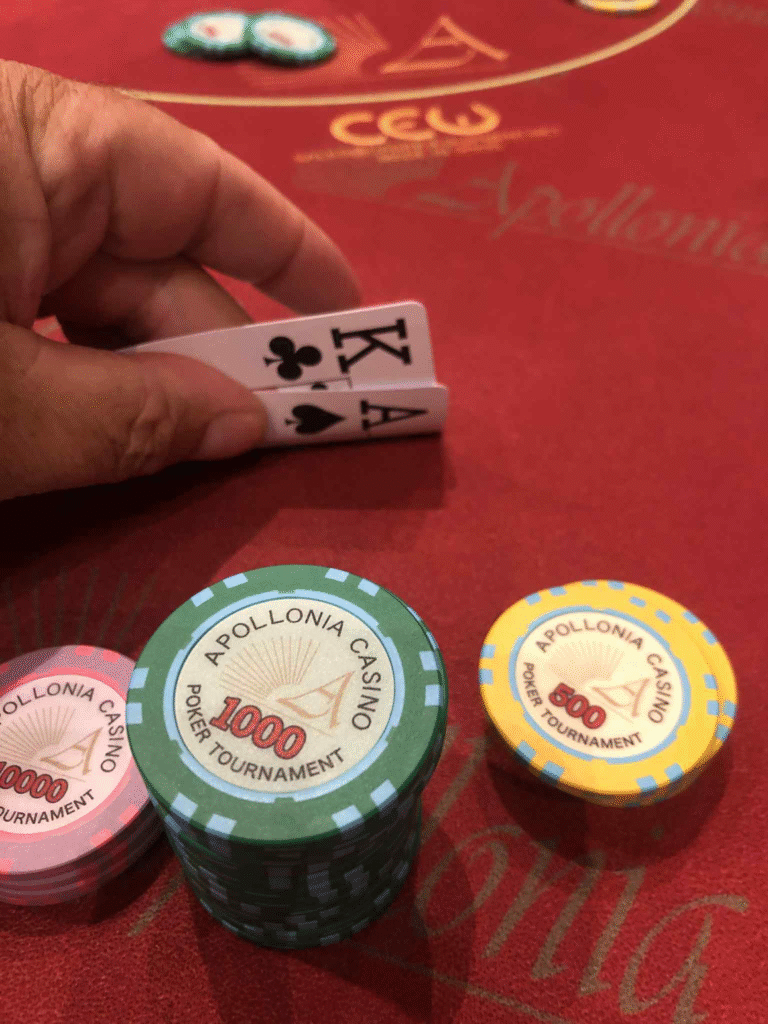 Virkeligt dejligt med en poker fri dag. Der bliver naturligt snakket enormt meget poker, og på en eller anden måde bliver man aldrig helt færdig med at tale poker. Så mange spillere samme sted. Tonsvis af badbeat historier, frustrationer, glæder, holdninger og diskussioner. Det er fedt at mærke den energi og passion for spillet, som vi alle deler. Desuden var der flere der havde deres familier og børn med, så meget kan lade sig gøre på disse ture. Jeg havde luret, at der var cashgame på Apollonia Casino og fik mig sat mig i et €1-3 NL spil. Jeg havde på forhånd besluttet mig for “bare” at hygge med et par øl, og spille noget mere løst end jeg ellers har haft for vane indtil nu. Det bølger lidt frem og tilbage, og jeg ryger et buyin ned, men får mig “grinded” det tilbage. 4-5 fadøl senere sidder jeg med cirka €600, og beslutter at stoppe, da jeg skal spille dag 2 lige om lidt…. klokken her sneget sig hen ad 04.00 – og nu må jeg tilbage på sporet.