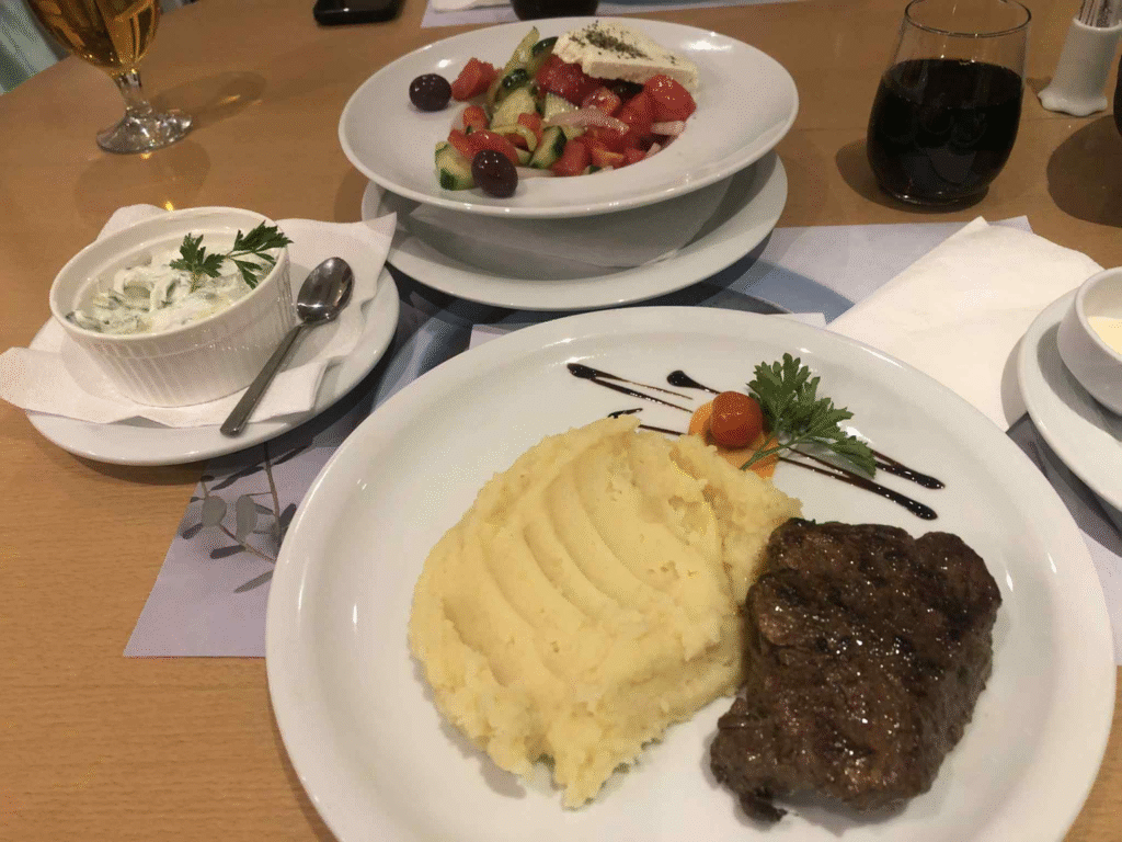 I restauranten på Apollonia Casino kunne vi opgradere vores udleverede madbillet med 10 euro ekstra og så fik VIP-menu. Det var et totalt lækkert tilbud, så nu skulle det foreløbige resultat fejres med en “winner dinner”. Præcis det som jeg mener med balance mellem seriøsitet og hygge!