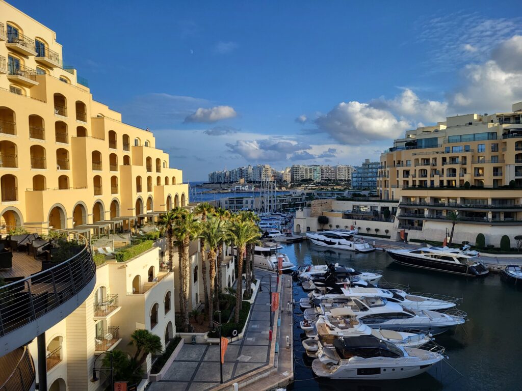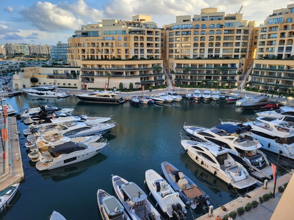 Stacken er på 70.000 i pausen, så jeg er godt tilfreds. Spillet sidder i skabet og jeg har en god fornemmelse. Måske er det denne turnering, hvor det hele flasker sig. I pausen hygger jeg mig med de andre danskere og hopper ned og får en Gelatto is i en isbod blot 150 meter fra kasinoet. Fantastisk is i øvrigt. Her lidt billeder fra Portomaso Casino og havnen lige ved siden af.