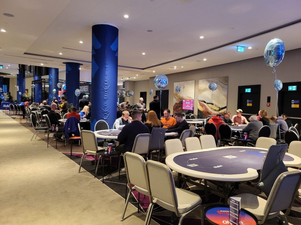 Den store pokersal – bemærk ballonerne med bordnumre