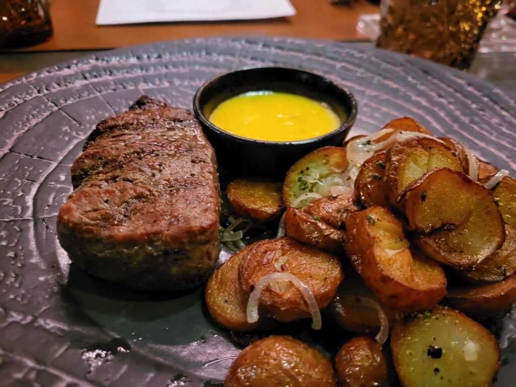 Jeg nappede en mørbrad, fordi der går man sjældent galt i byen. Det var vildt hyggelig middag, hvor vi grinede og drillede hinanden. Personligt holder jeg mig ofte helt fra alkohol på disse ture, men det er der andre der absolut ikke gør. Denne aften blev nærmest legendarisk idet den ene dansker ville overbevise to andre danskere, at han stadigvæk kunne drikke som i de gamle dage. Det kunne han så næsten og de to andre danskere, ja vi nævner selvfølgelig ikke navne i denne situation, kunne til sidst slet ikke følge med længere og der var nogle som blev MEGET fulde. Hvilket var ret sjovt.