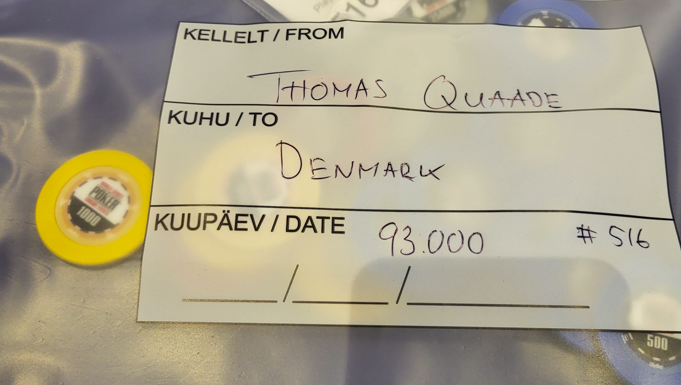 En spiller kommer til bordet efter vi har ramt pengene. Han er tydeligvis frustreret og på tilt. Han sætter sig med 180.000, hvilket er average på det tidspunkt og fortæller at han lige har tabt en pot på en million. Jeg slikker mig om munden og håber på, at han laver en fejl i ren frustration. Ganske rigtigt, så skubber han all-in med K♦️7♦️over mit K♠️K♥️ raise i et dumt overbet all-in med 40 big blinds?? Jeg holder hjem og han forlader surt lokalet. Totalt unødvendigt – men jeg takker for chipsene, mens en sjov spiller ved mit bord spørger om jeg har fødselsdag.