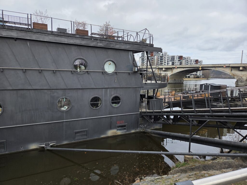 Båden er et hotel, som hedder Botel Marina. Reelt set er det et stort gammelt skib, som er blevet lavet om til hotel og ligger på Vltava, som er den længste flod i Tjekkiet. 434 km lang faktisk. Vltava løber igennem Prag og er med til at gøre Prag billedelig smuk – lidt på samme måde som Themsen i London eller Seinen i Paris.