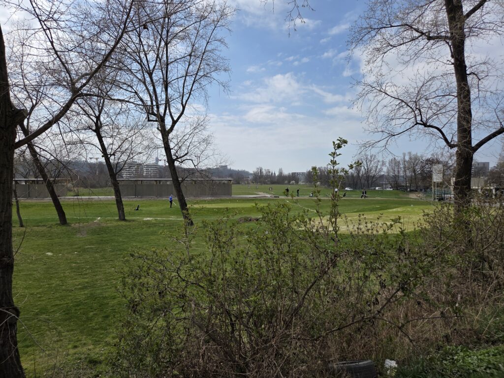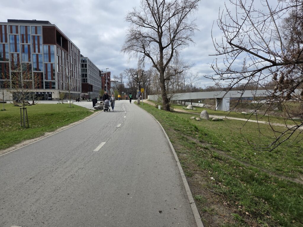 100 meter fra båden ligger en nyoprettet golf driving range med indspils-muligheder, putting green og godt med plads. Der er små caféer på stien ned til båden og masser af aktivitet. Folk løbetræner, går med hunden, rollerskater og det føles lidt som et hyggeligt område at bo i. Om vinteren er der en skøjtebane og på floden kan man træne vandsport.