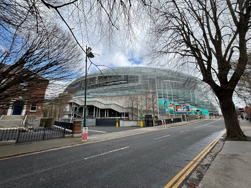 Jeg kommer også forbi Aviva Stadium, som nærmest er klemt ind midt i et helt almindeligt villakvarter. Lidt specielt syn, men mega fedt.