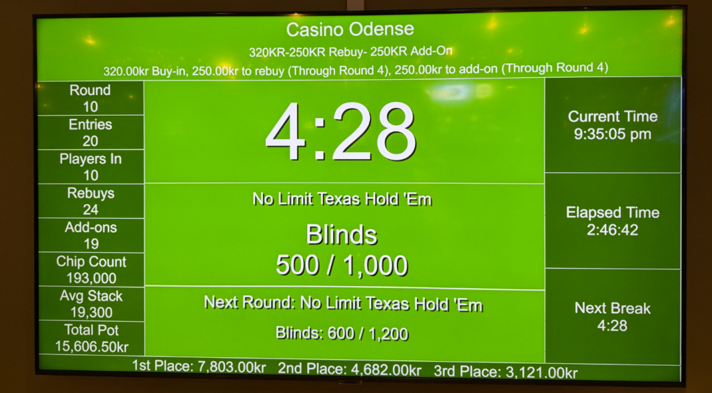 Næste gang der spilles turnering på Casino Odense er i morgen torsdag den 5. februar kl. 18.45. Tilmelding sker på Casino Odenses hjemmeside her.