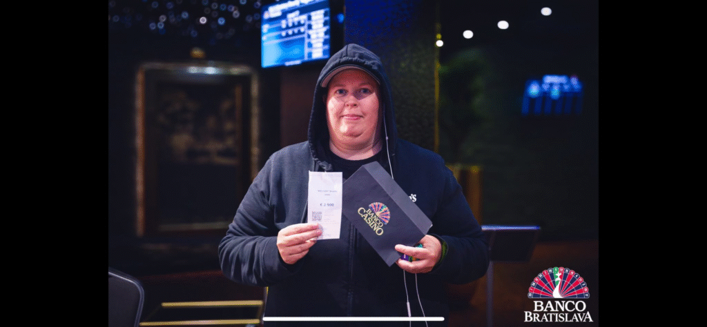Der venter de 30 spillere nogle spændende sekunder, når de efter at have slået en spiller ud, skal “åbne” bountien. En af finaledeltagerne, Anja Wisney nappede den store bounty i sidste weekends Mystery Bounty turnering på Banco Casino i Bratislava.