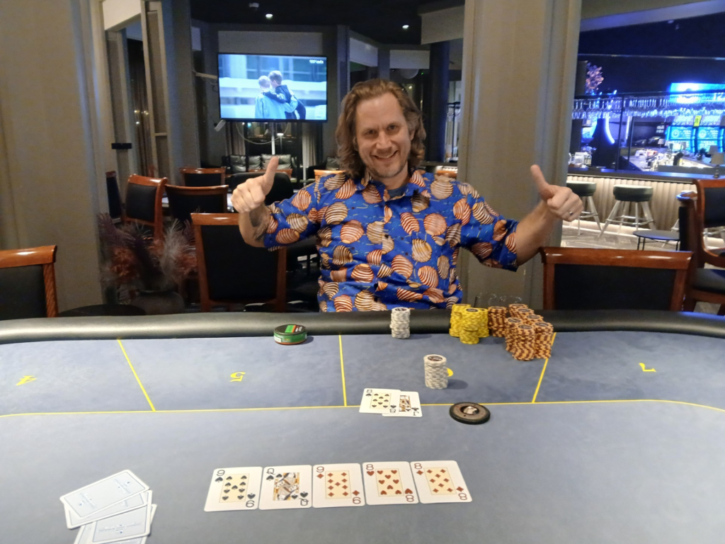 Heads-up var mellem Mikkel Sørensen (2er til 8.000 kr.) og Andreas Olsson (1er til 11.500 kr.). Mikkel, der efterhånden er en rutineret ræv, måtte dog strække våben til Andreas, som havde en rigtig god dag og var en glad vinder, som ses på billedet nedenfor. Andreas rammer fuldt hus i den sidste hånd.