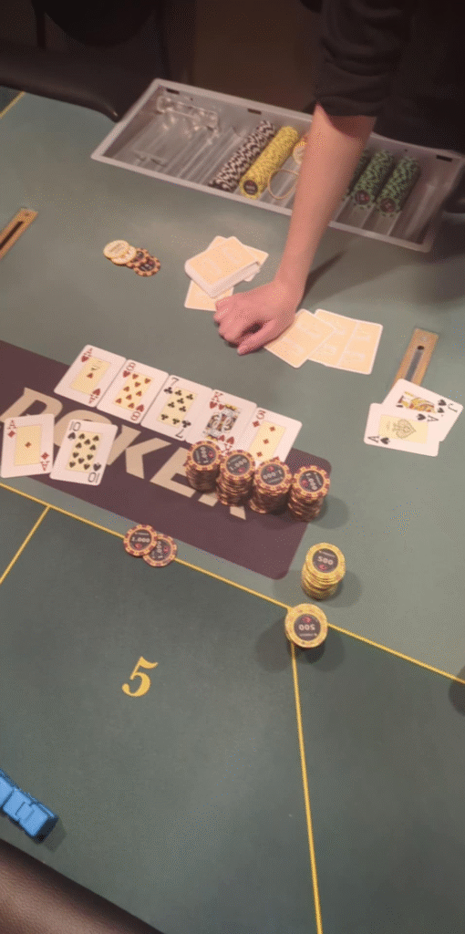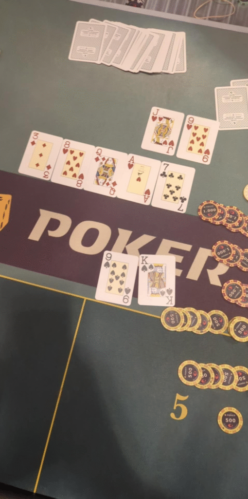 Det blev imidlertid vendepunktet. Først fandt han et vigtigt es på floppet med K5 mod A8 og bagefter ramte en knægt, da han var bagud mod AQ (se billede nedenfor) og fik nyt liv i turneringen.