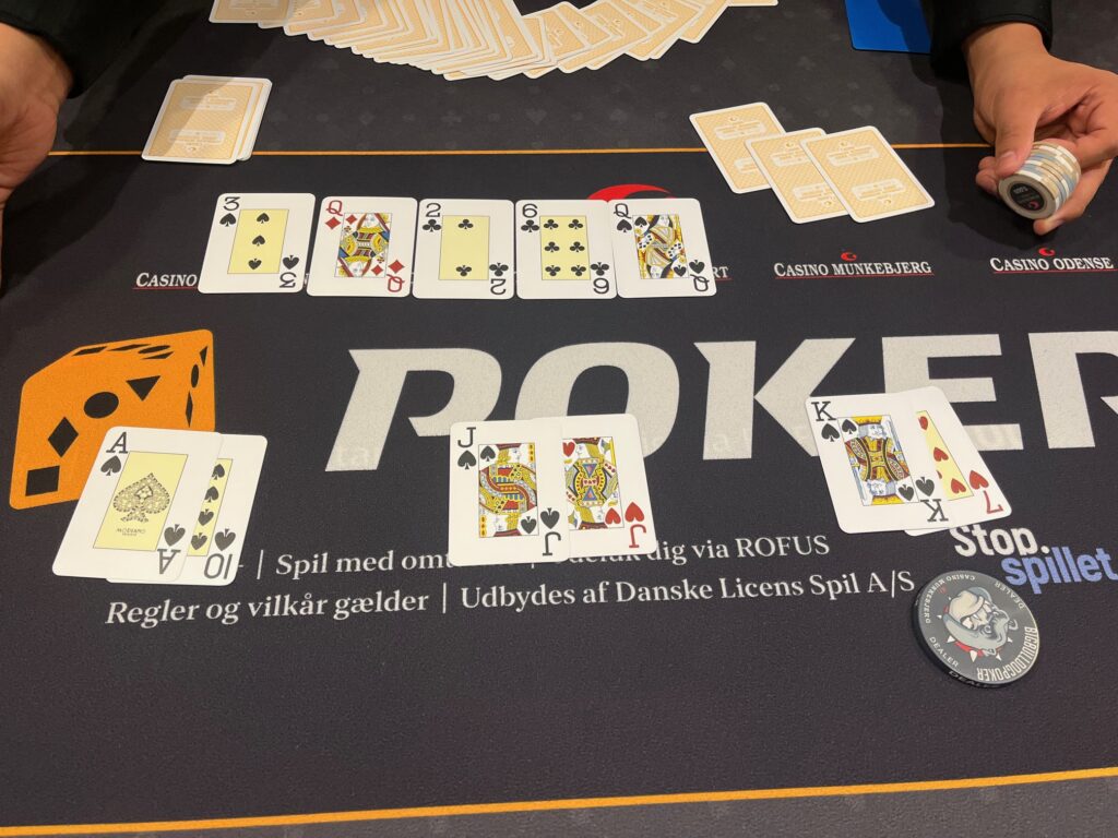 Da finalebordet var fundet, så blev tempoet sat gevaldigt ned. Efter lidt tid ryger Daniel Boc, som er blevet shortstack til Freddy Madsen, der har et domineret es med AJ. Men det hele starter med at Daniel tager føringen på floppet med A7, men river er en knægt og så var det farvel til Daniel.