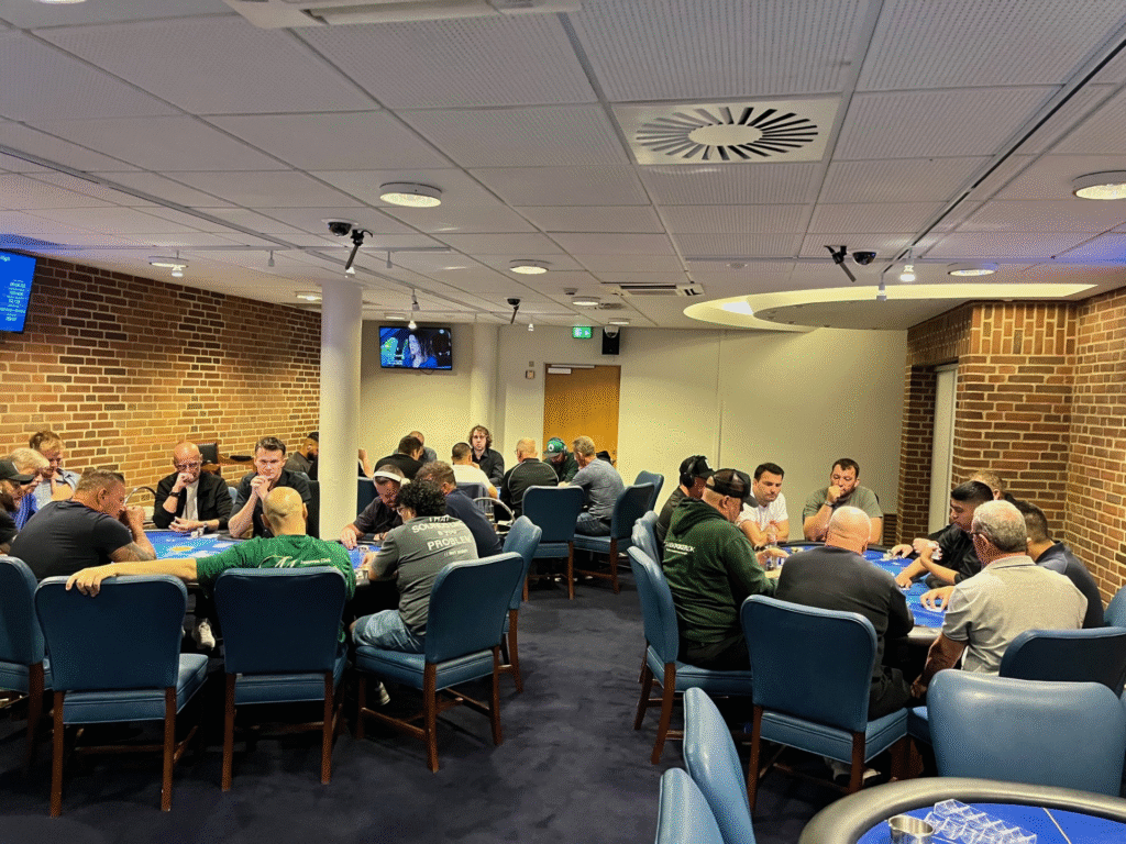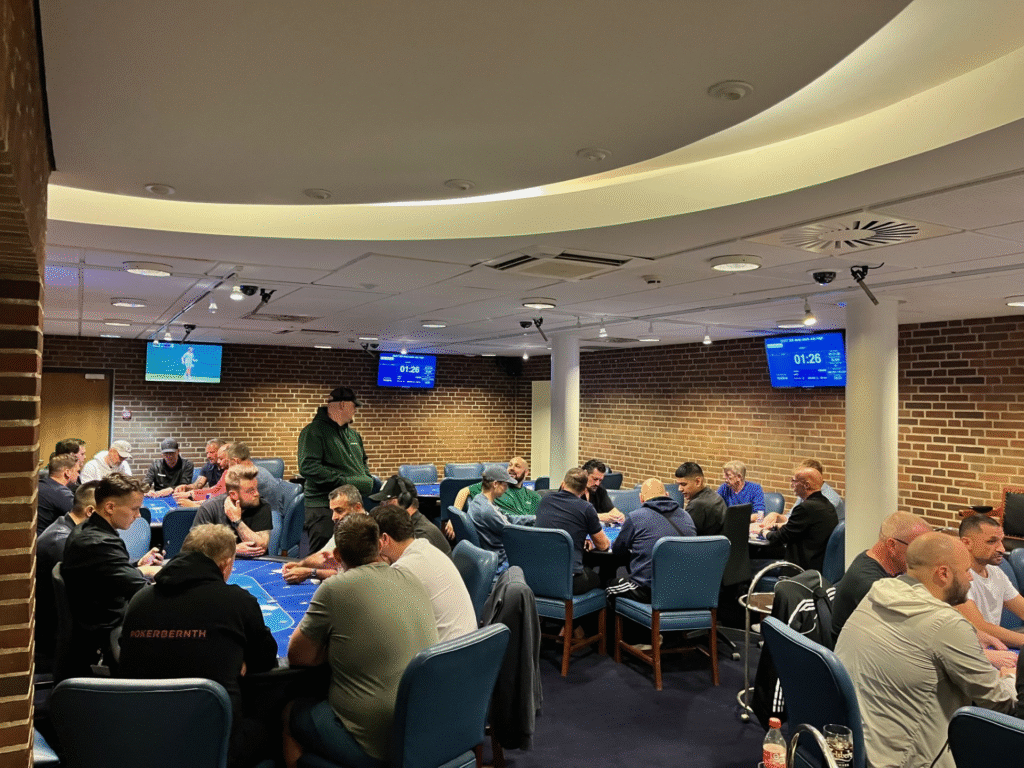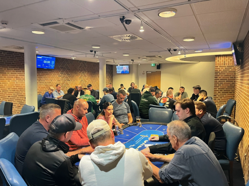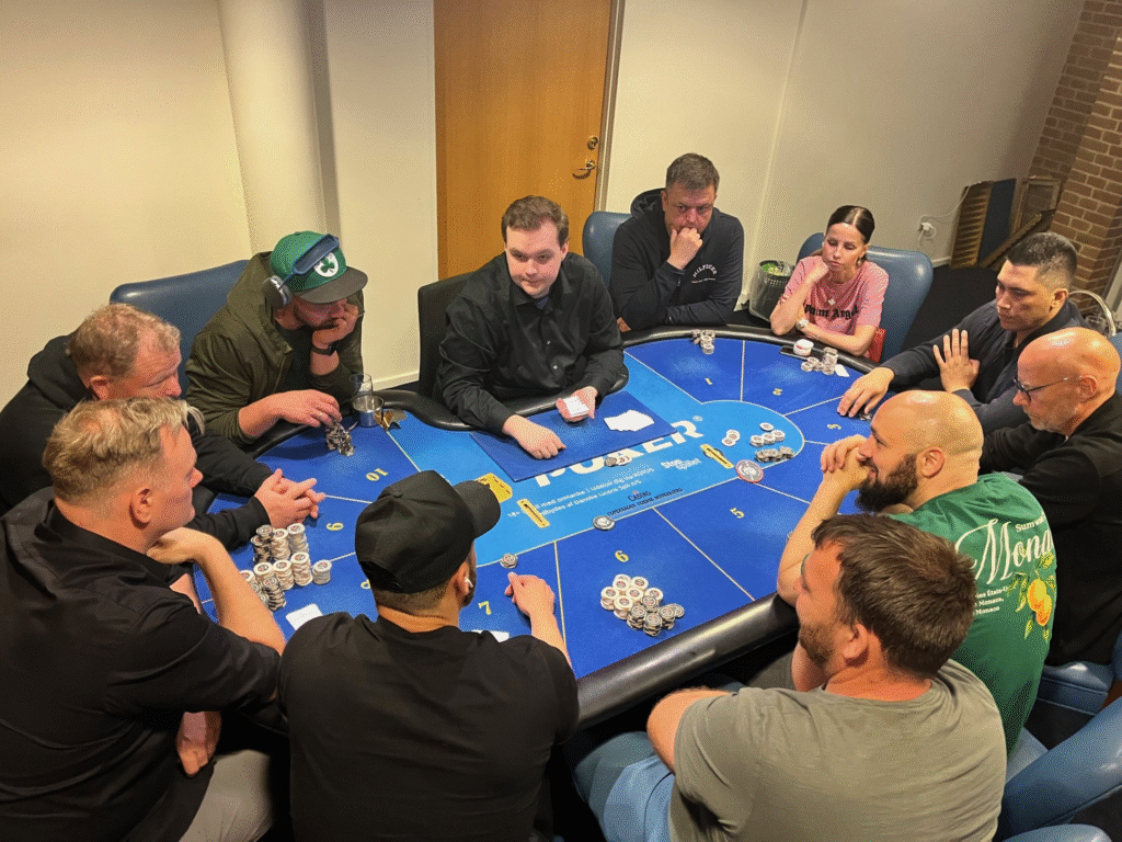 Stemningen var høj allerede fra start, hvor der også blev plads til én fra ventelisten. På skærmene fulgte spillerne med i to danske triumfer af Clara Tauson og August Holmgren, som begge leverede flotte præstationer på græsset i Wimbledon. Det samme gjorde personalet ved den grønne filt i pokerkælderen.