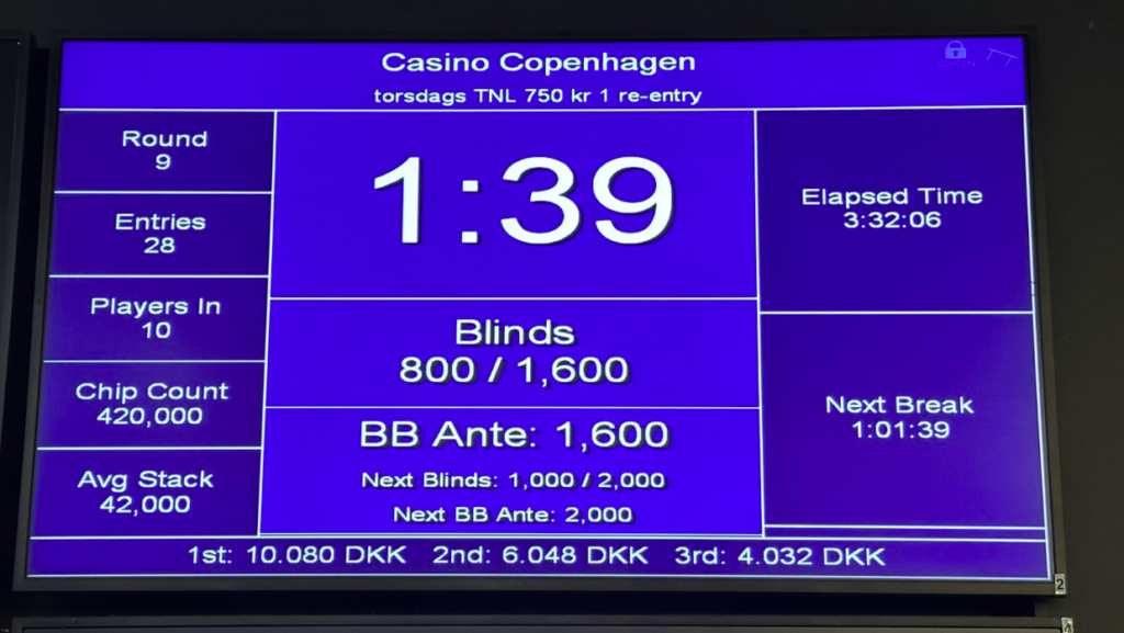 Efter den sidste pokerdealerskole havde Casino Copenhagen fået dealere nok til at kunne afvikle pokerturneringer og cashgames igen på ugentlig basis. Den første turnering blev spillet i går i et re-launch af de ugentlige turneringer. Alle de nye dealere var i brug og gjorde det glimrende.