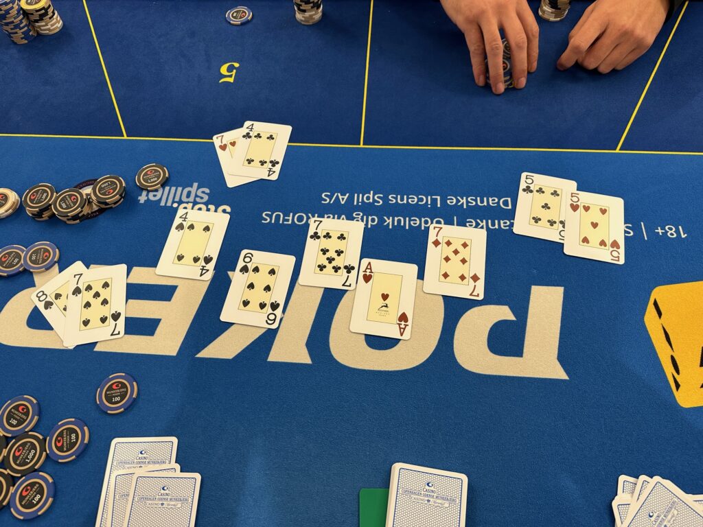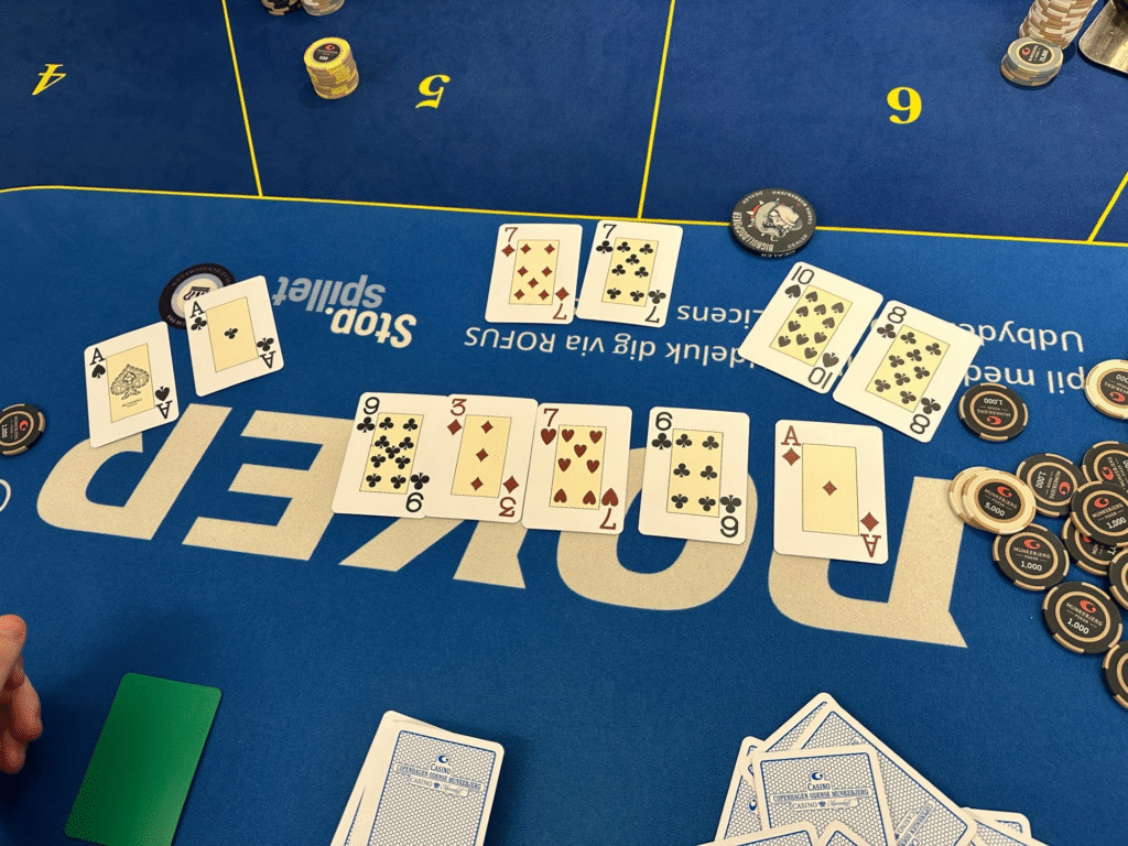 3-vejs all-in, hvor underdog Brian Madsen rammer straight mod Rodrigos esser og Jørgen Dyhrbergs set:
