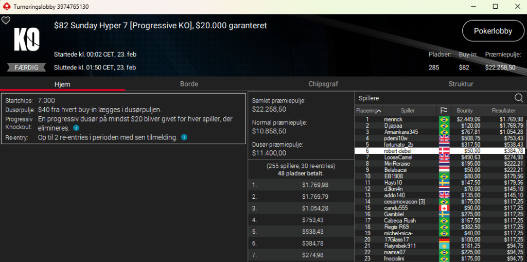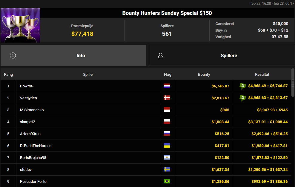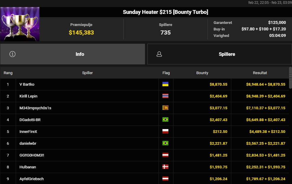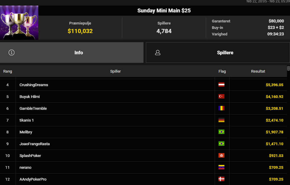 I går, søndag den 22. februar 2026, var endnu en dag, hvor danskerne fik fine resultater med sig hjem på Danske Spil Poker – så vi starter der.