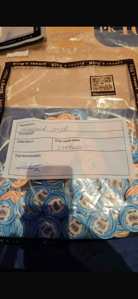 Når de sidste 24 spillere i eftermiddag sætter sig til bords, er Mohammed “Momo” Najdi med – og et godt bud på en vinder. Momo er ved finalens start på en syvendeplads med 3.455.000 chips, average er 2.800.000.