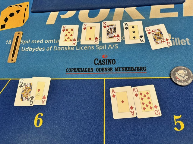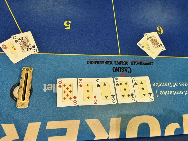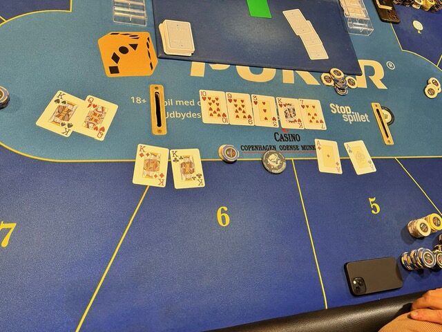 Steen Siebert blev elimineret på tredjepladsen, da hans A-Q ikke kunne overleve mod A-K hos Carsten Fjeldsted, Steen fik som treer 8.000 kr.