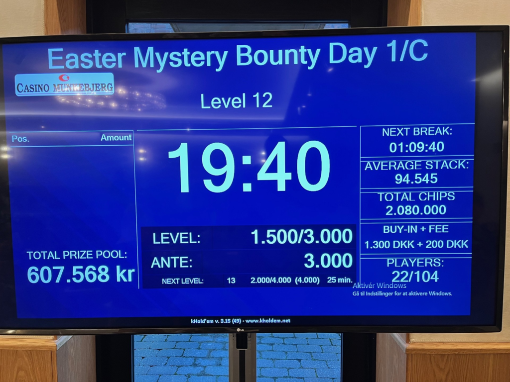EASTER Mystery Bounty dag 1C1 – Startstack 20.000 – Buyin 1.500 kr. (1.300 kr. + 200 kr.)