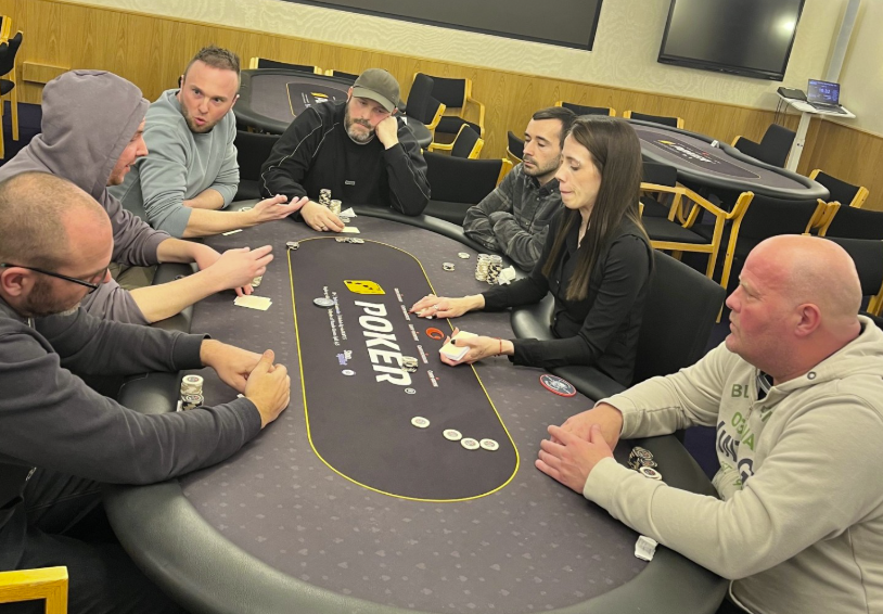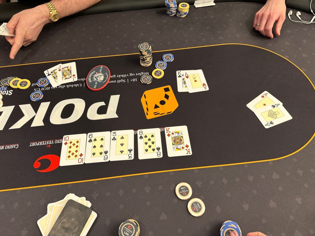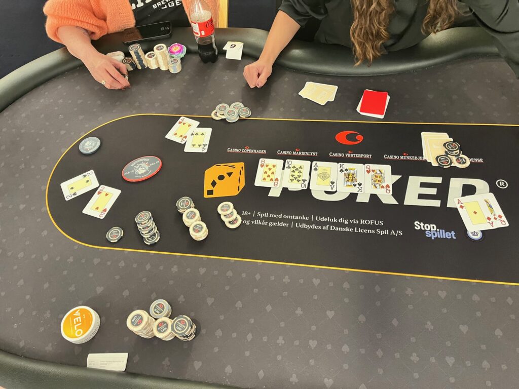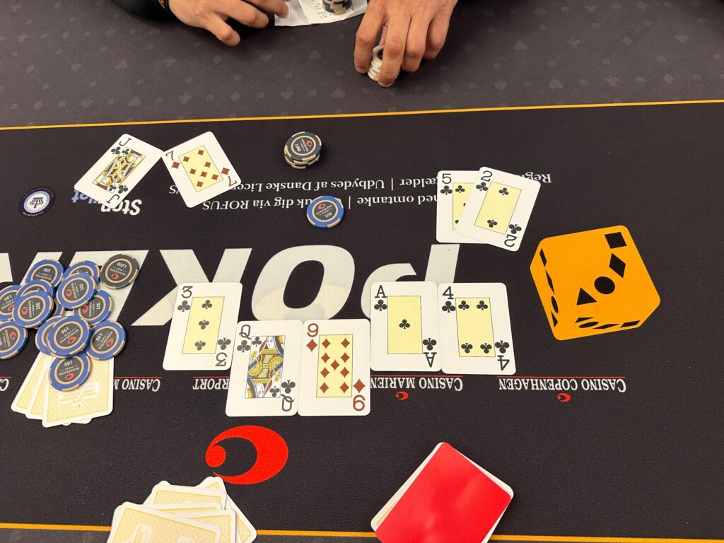 Der var også en hånd, hvor Gongpor er all-in på shortboblen med 2erne mod Karina Tvede, der har 4erne og Ali Fadavi med AQ.