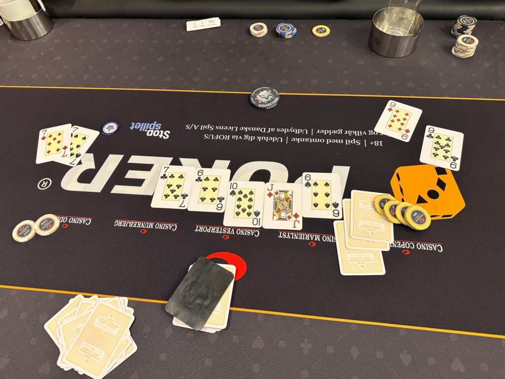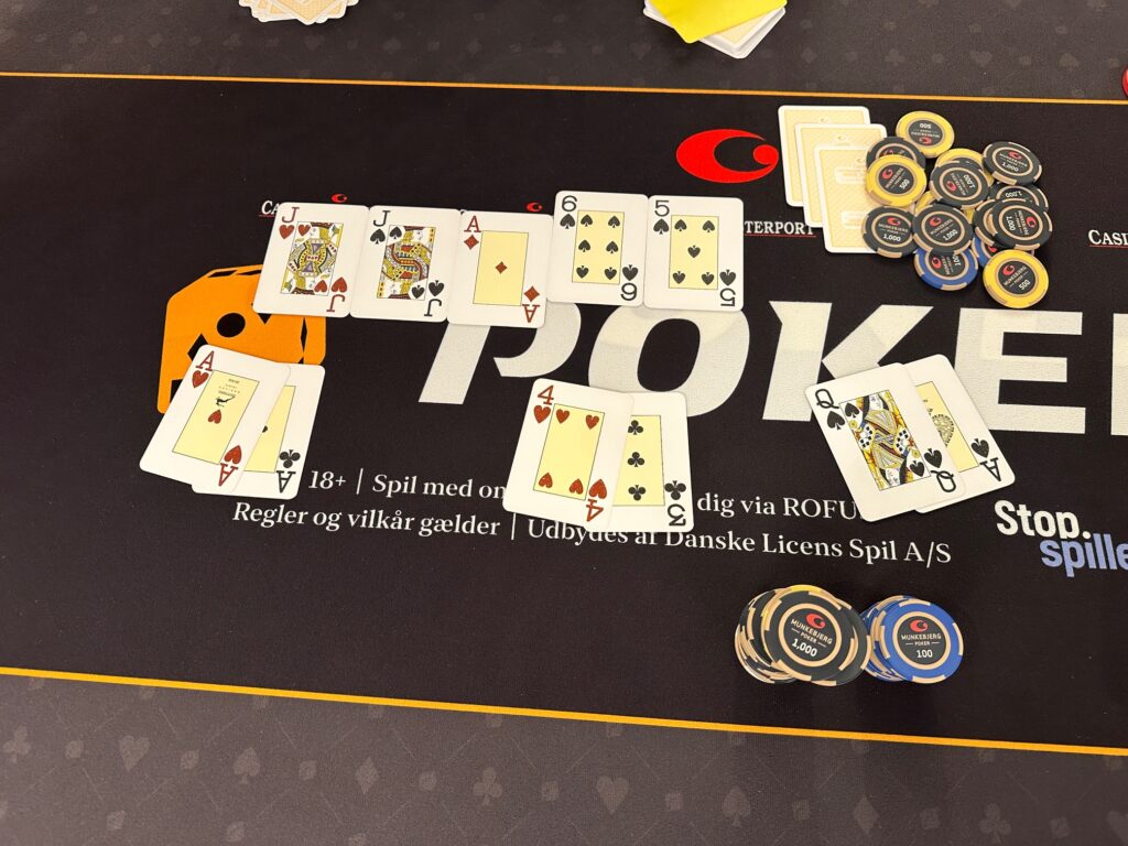 Vi fangede også en hånd mellem Torben “Basse” Tvede Gøttler med 7erne og Nils, der er godt inde med 9erne. Men Basse er heldig og laver et hus: