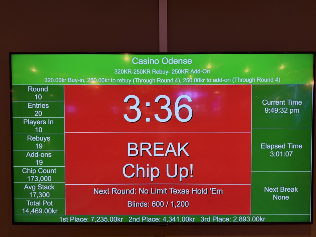 Næste gang der spilles turnering på Casino Odense er i morgen torsdag den 19. februar kl. 18.45. Tilmelding sker på Casino Odenses hjemmeside her.