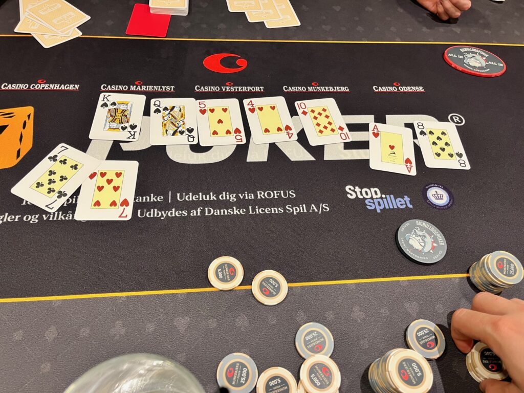 Inden vi kommer så langt, så skal I ikke snydes for dagens tal. Der var 38 spillere til start, så næsten helt udsolgt. Der blev foretaget 31 re-entries og 31 add-ons, hvilket bragte præmiepuljen op på 45.500 kr. og penge til top-7.