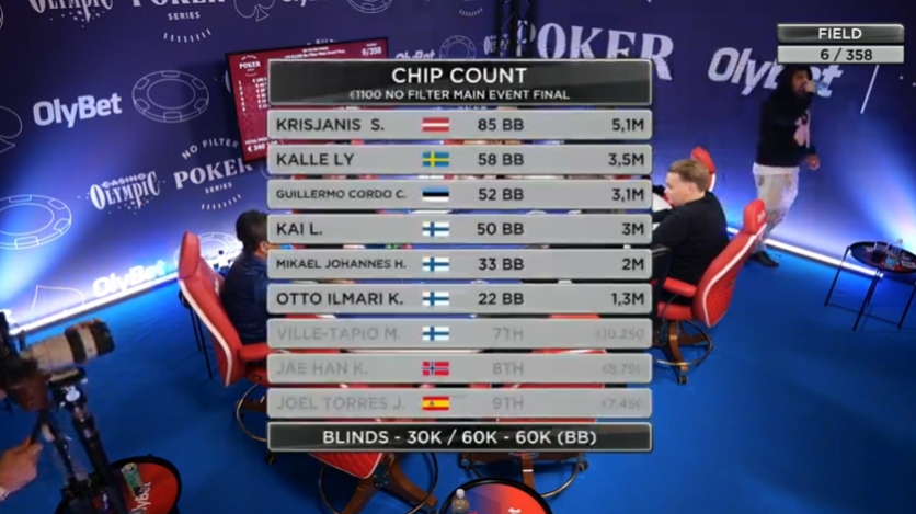 Foto: OlyBet Poker livestream – der er €100.000 til vinderen af Main Event