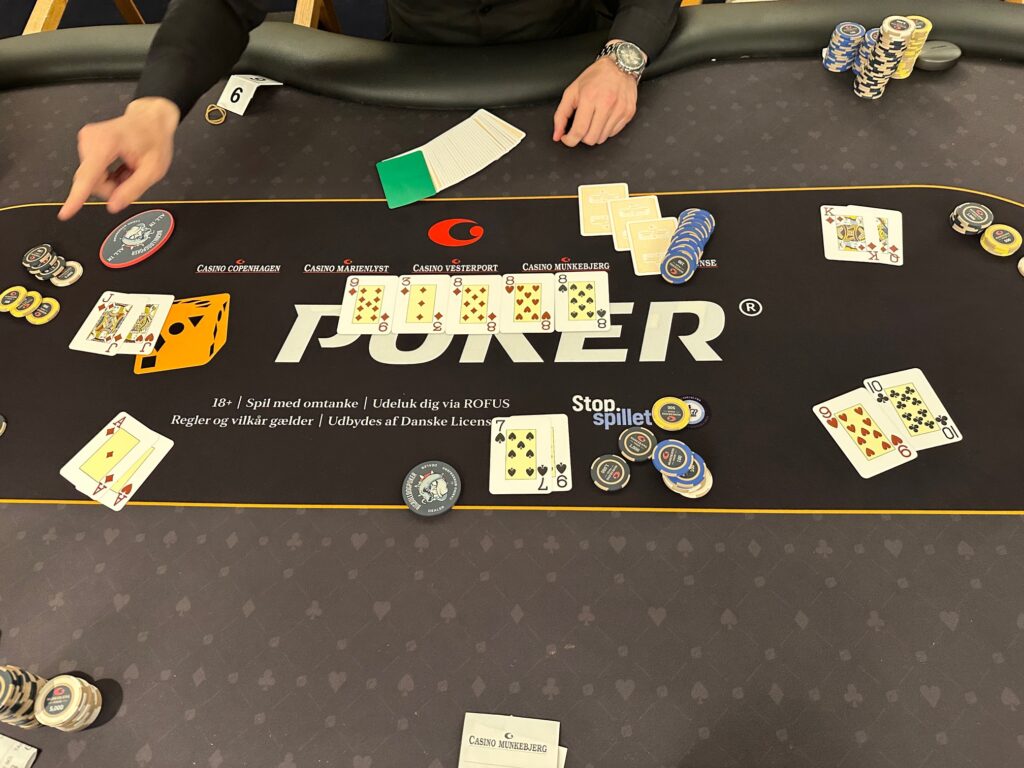 Lidt længere fremme har spillerne strammet op, så det hele ender i en trevejs all-in mellem Torben, Per og Allan, hvor den bedste starthånd flopper bedst og holder hele vejen hjem.