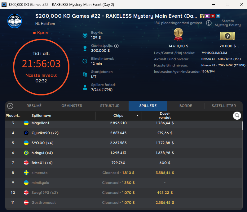 Der er dog desværre ingen danskere, der er gået videre til dag 3 (finalebordet), som lige er startet.