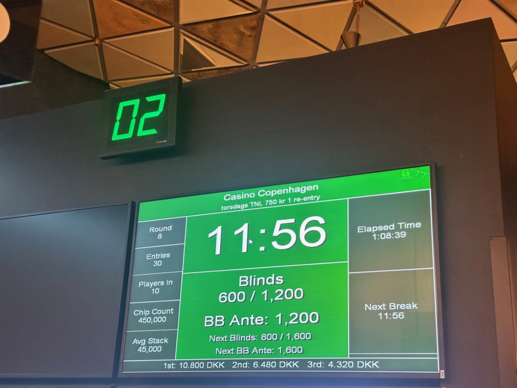 Det var en hyggelig torsdag på kasinoet i København. Masser af turister og udenlandske gæster på besøg. Poker blev der også spillet. Fire borde var totalt i gang – turnering og cashgame. Gode tider.