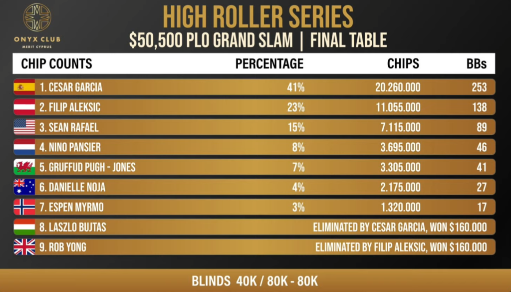 I dag spilles finalebordet i $50.000 PLO Grand Slam. Her fører den dygtige og aggressive Cesar Garcia. Se finalebordet her:
