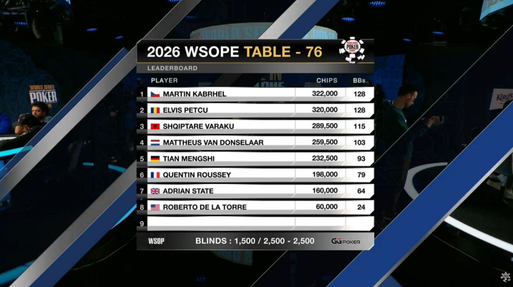 WSOP Europe Main Event 2026 dag 2 er lige startet og det er selvfølgelig med badboy Martin Kabrhel, der jo er på hjemmebanen i Prag, med på livestreamet på Feature Table.