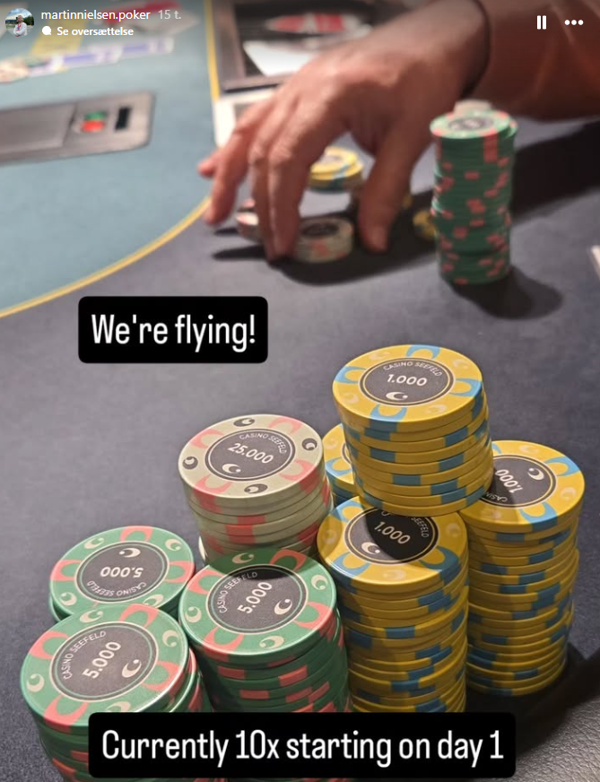 Turneringen er en €1.100 NLH-turnering, så altså ikke engang en shortdeck-turnering denne gang for Martin Nielsen.