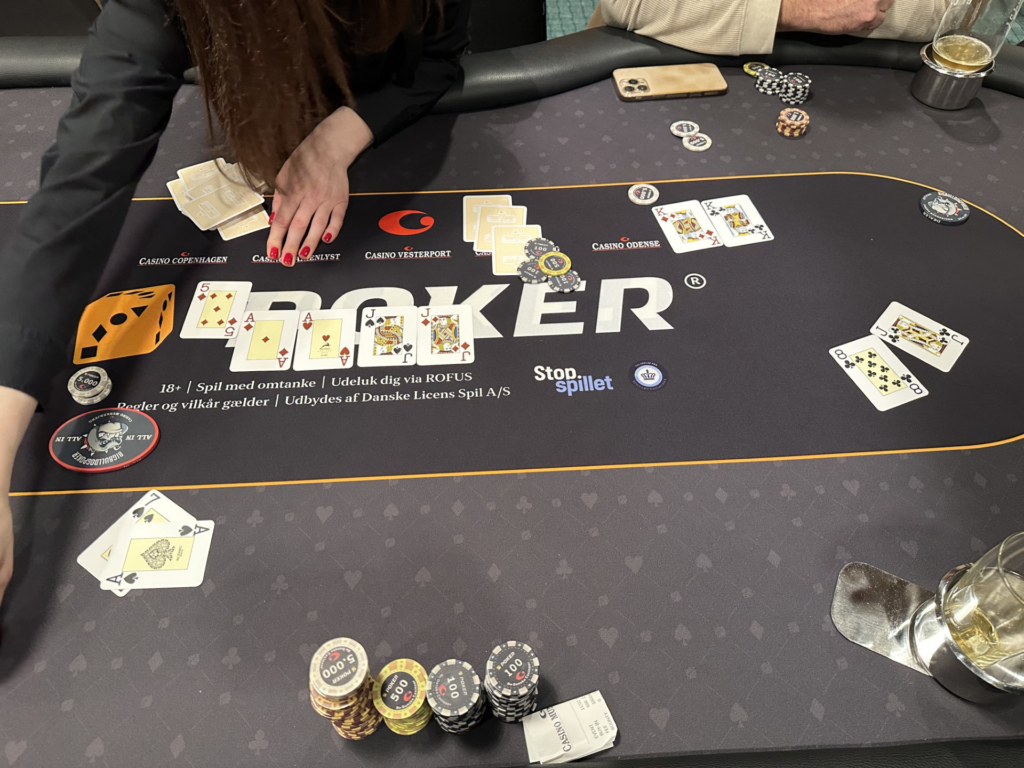 3-vejs all-in med konger mod A7 mod J8 på vildt setup-board (Walid mod Lars og Dan):