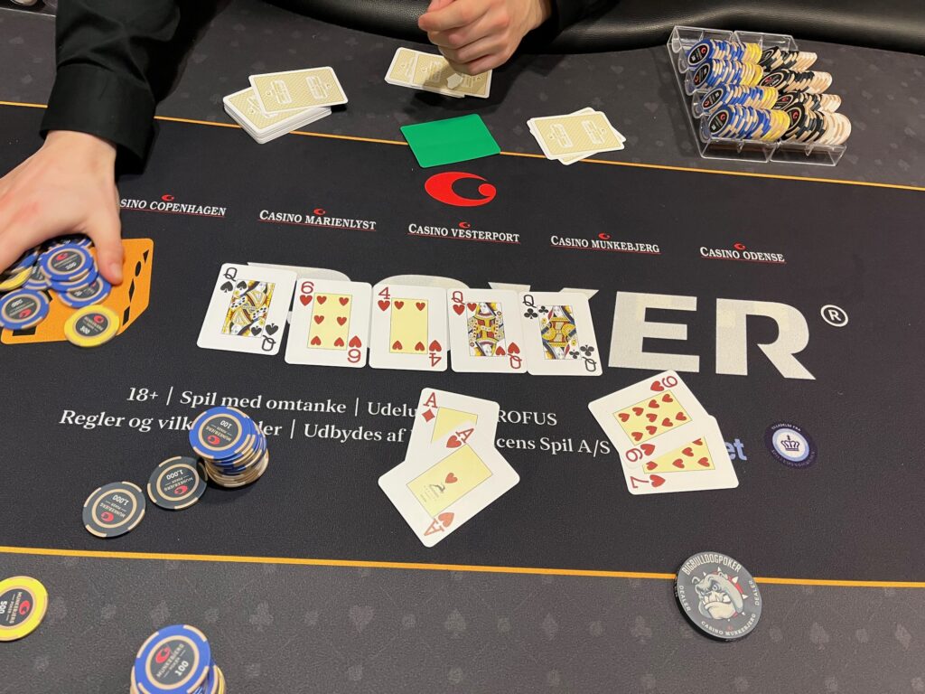 Aftenen bød på flere store hænder og afgørende øjeblikke. John Sørensen kom i modvind, da hans flush løb direkte ind i et fuldt hus hos Denis Hansen.