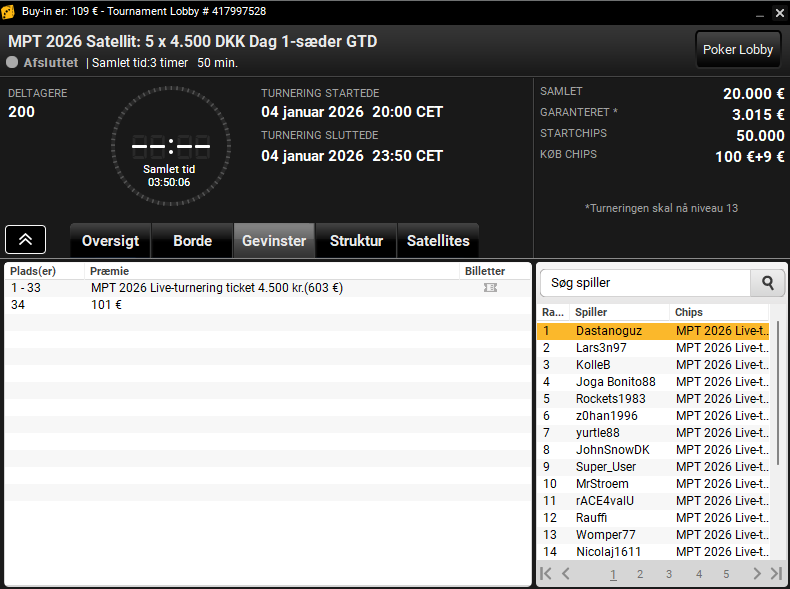 Slutteligt kan vi fortælle, at der var hele 200 entries og 33 MPT-billetter i den store kval søndag aften. De 200 entries er klart den største kval indtil videre frem mod MPT 2026.