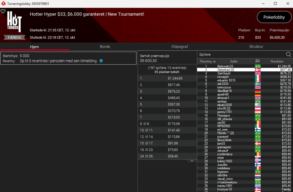 Dansk bubbleboy (hvornum18) og dansk andenplads i Hotter Hyper $33 med $6.000 garanteret. Seberbad fik $917 for 2. pladsen.