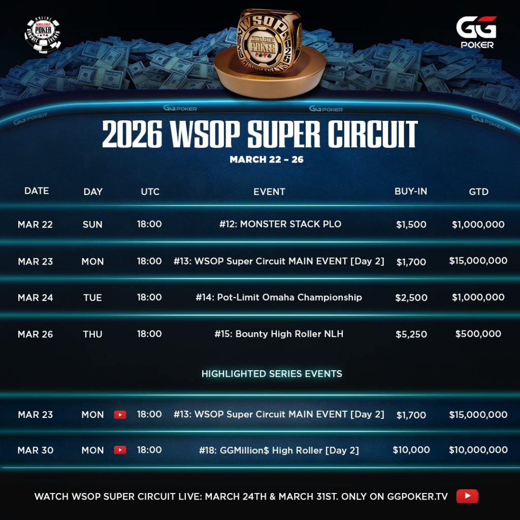Main Event’et har en garanti på intet mindre end $15 millioner, hvilket placerer den øverst blandt alle online turneringer i serien.