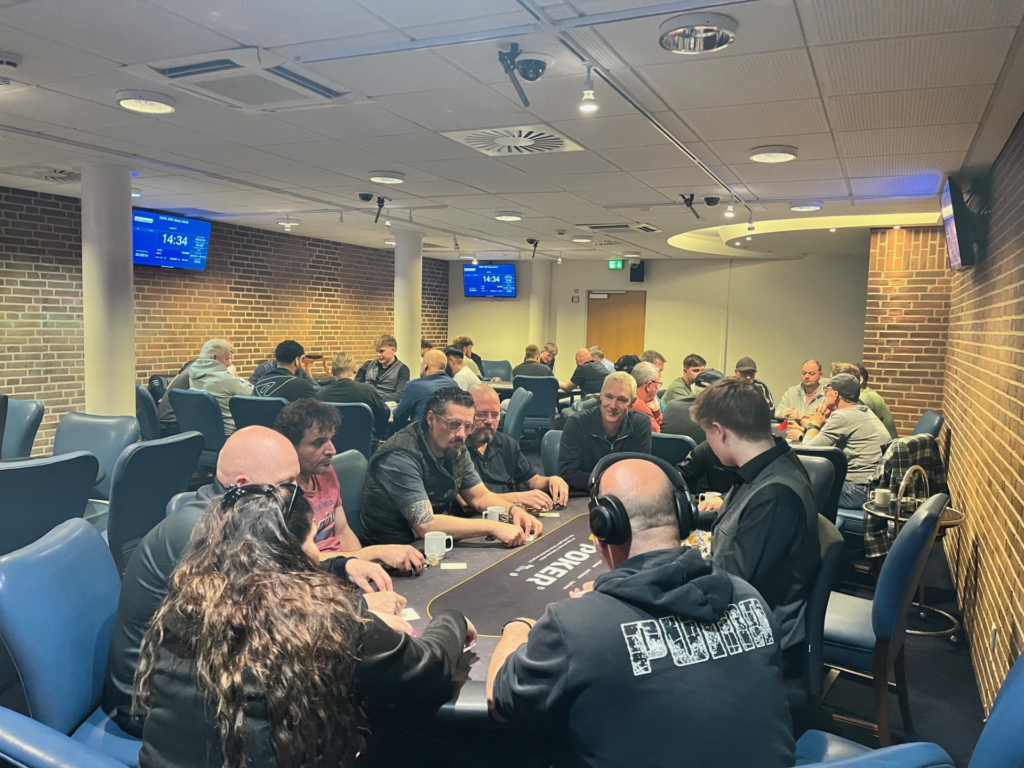 Det var tæt på, at den røde lampe kunne tændes til torsdagens turnering på Casino Munkebjerg i Vejle. Foråret viste sig fra den kølige side, og det trak spillerne indenfor – og ned i pokerkælderen.