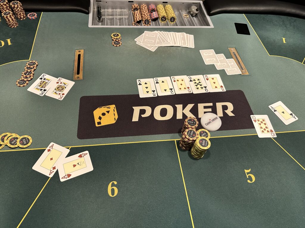 Afgørelsen faldt hurtigt efter ovenstående hånd, da Kasper Christensen sendte sine sidste chips i midten mod Nikolai Christensen – men denne aften var der intet at stille op. Kasper måtte tage til takke med tredjepladsen og 2.916 kr.