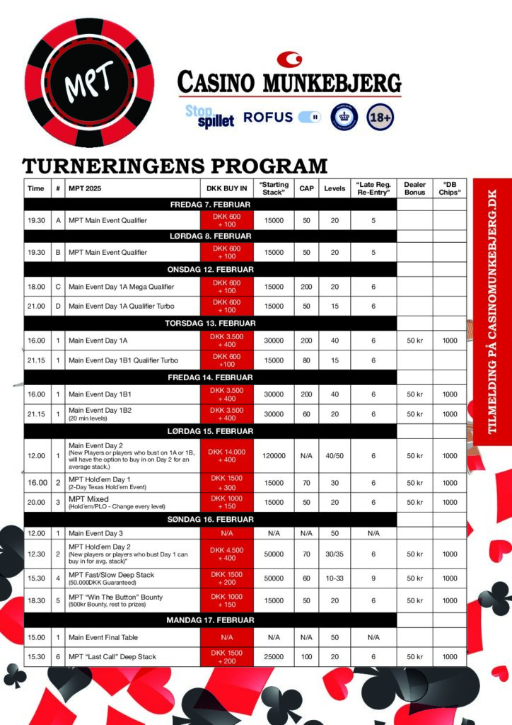 Her er en oversigt over hele MPT-programmet. Du kan også se det her på Casino Munkebjergs hjemmeside.