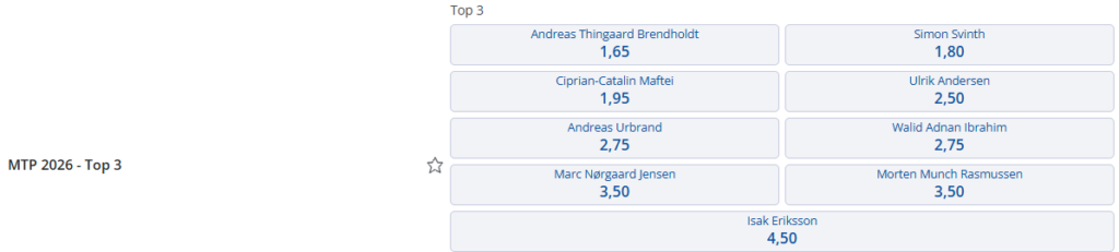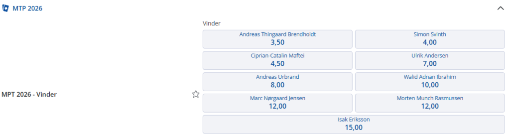Der er kommet odds op på Danske Spil ift. finalebordet til MPT Main Event 2026.